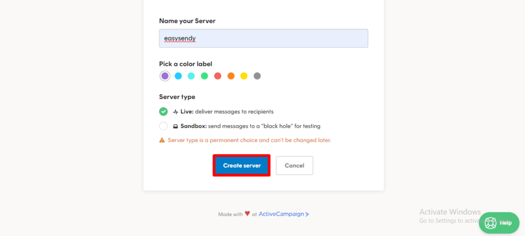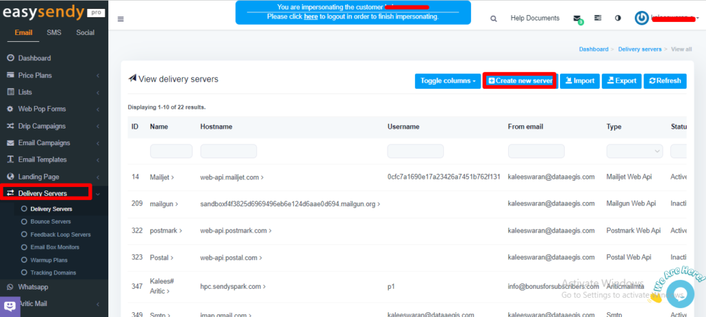 9. Go to Easysendy dashboard select servers and click on Delivery server and Create new server.