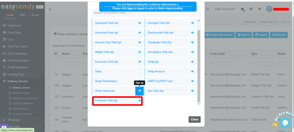 10. Add Postmark web Api in EasySendy Pro Delivery Server.