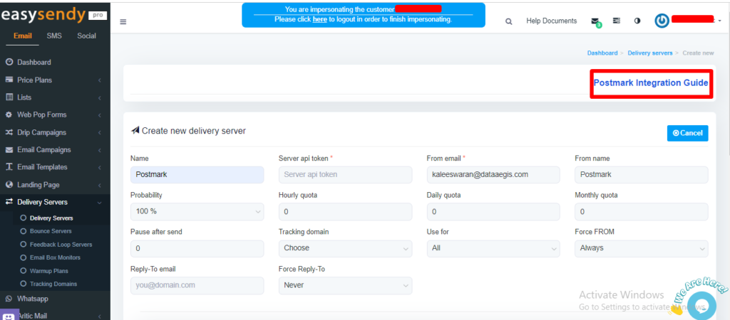 In this article, you’ll learn how to Activate Postmark web API integration with Easysendy Pro.