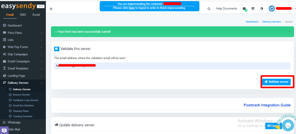 13. Validate Delivery Server in EasySendy Pro account.